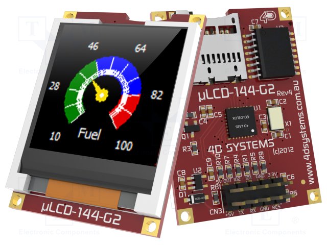 Дисплей: TFT; 1,44"; 128x128; Размер окна: 25,5x26,5мм; 250кд/м2