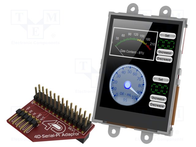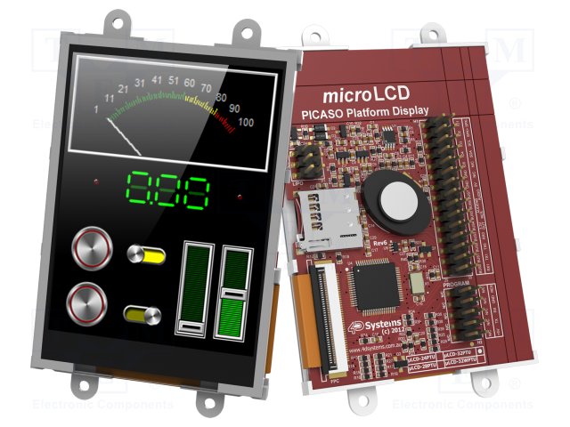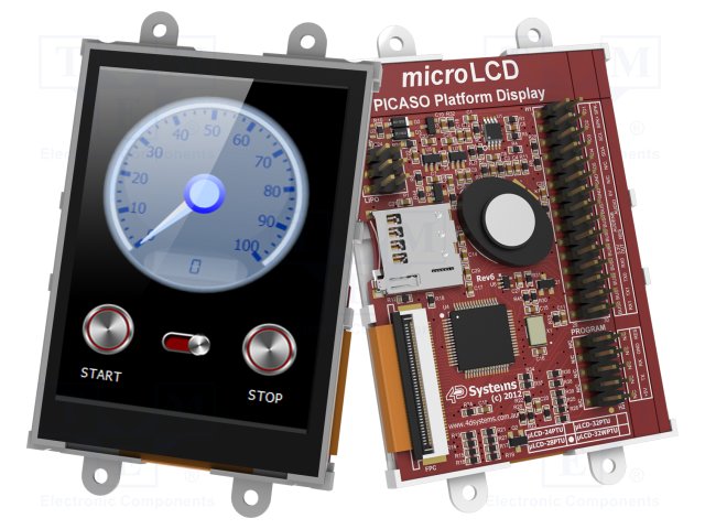 Дисплей: TFT; 2,4"; 240x320; Размер окна: 36,7x48,9мм; uC: PICASO