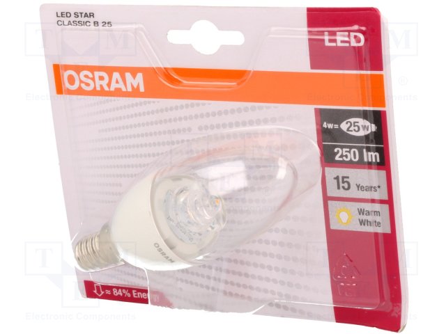 Лампочка LED; теплый белый; E14; 230ВAC; 250лм; 4Вт |