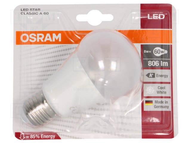 Лампочка LED; холодный белый; E27; 230ВAC; 810лм; 8Вт |