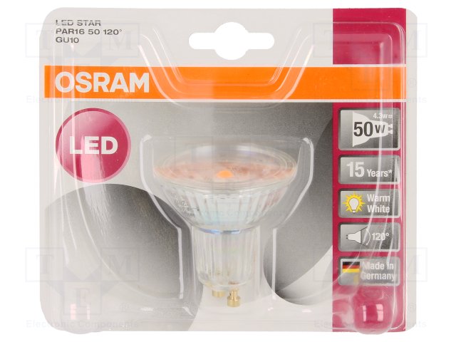 Лампочка LED; теплый белый; GU10; 230ВAC; 310лм; 4,3Вт |