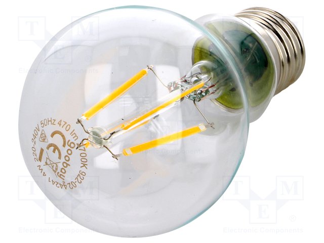 Лампочка LED; теплый белый; E27; 230ВAC; 470лм; 4Вт; 300° |