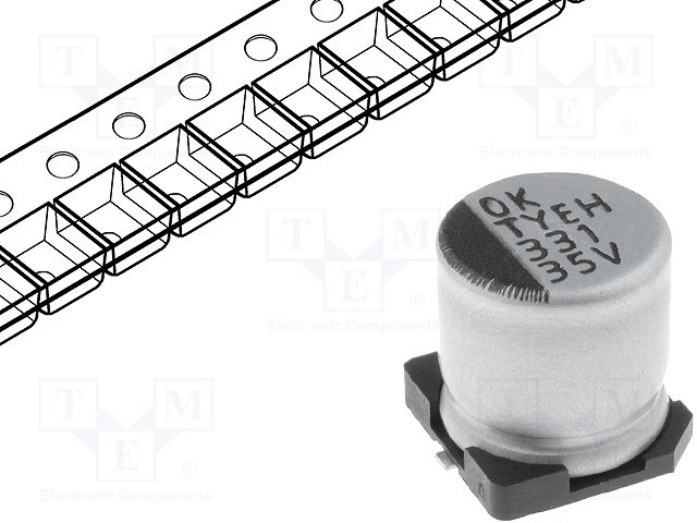 Конденсатор: электролитический; SMD; 330мкФ; 35ВDC; Ø10x10мм; ±20% |