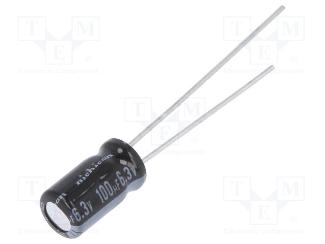 Конденсатор: электролитический; THT; 100мкФ; 6,3ВDC; Ø5x9мм; ±20% |