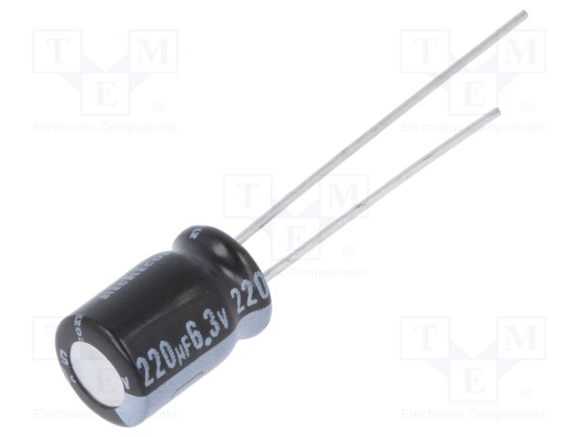 Конденсатор: электролитический; THT; 220мкФ; 6,3ВDC; Ø6,3x9мм |