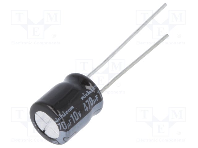 Конденсатор: электролитический; THT; 470мкФ; 10ВDC; Ø8x9мм; ±20% |