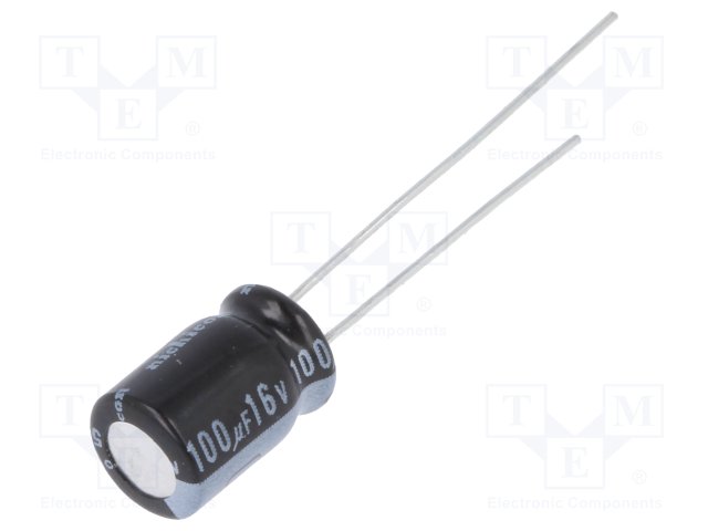 Конденсатор: электролитический; THT; 100мкФ; 10ВDC; Ø5x9мм; ±20% |