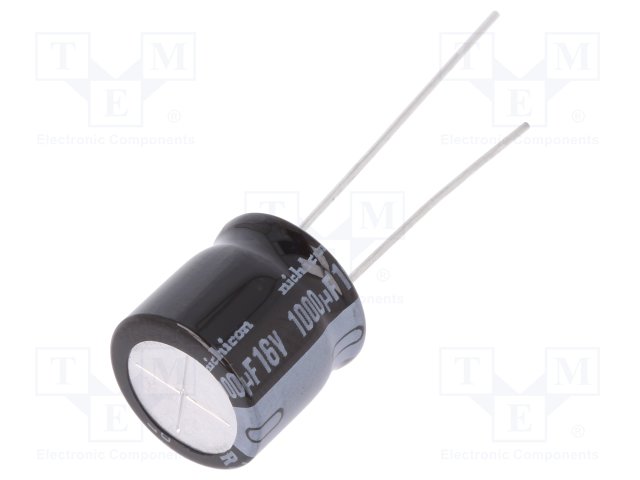 Конденсатор: электролитический; THT; 1000мкФ; 16ВDC; Ø12,5x12,5мм |