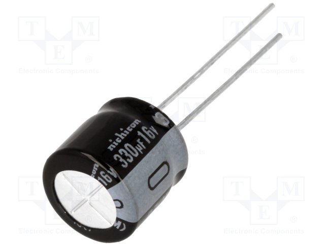 Конденсатор: электролитический; THT; 330мкФ; 16ВDC; Ø10x9мм; ±20% |