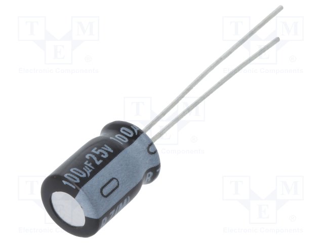 Конденсатор: электролитический; THT; 100мкФ; 25ВDC; Ø6,3x9мм; ±20% |