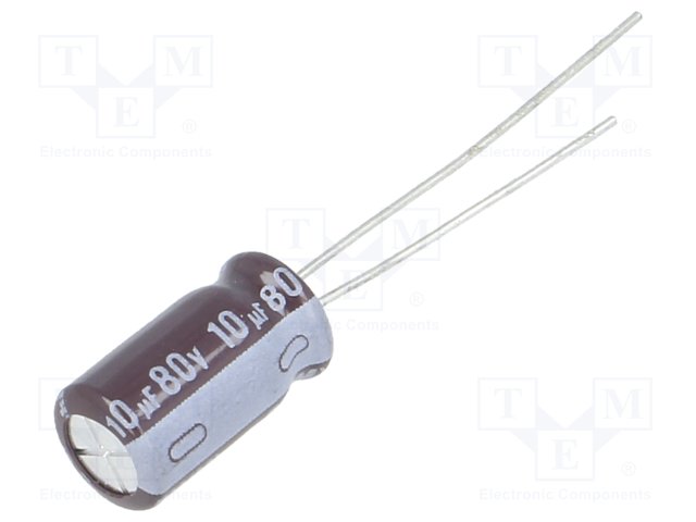 Конденсатор: электролитический; THT; 10мкФ; 80ВDC; Ø6,3x11мм; ±20%