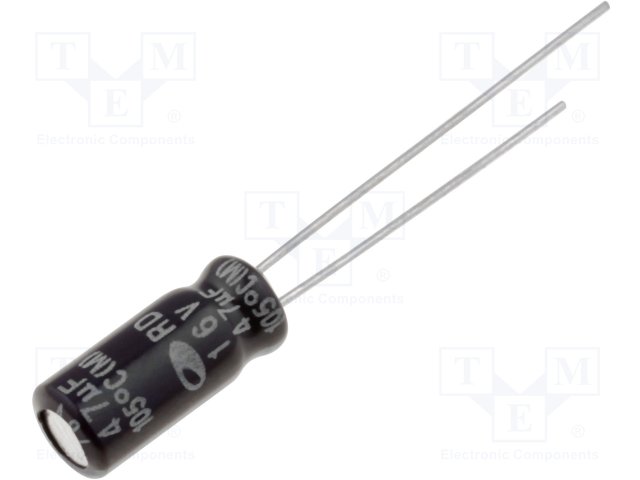 Конденсатор: электролитический; THT; 47мкФ; 16ВDC; Ø5x11мм; ±20% |