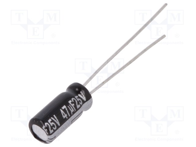 Конденсатор: электролитический; THT; 47мкФ; 25ВDC; Ø5x11мм; ±20% |