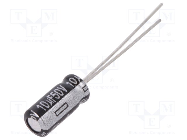 Конденсатор: электролитический; THT; 10мкФ; 50ВDC; Ø5x11мм; ±20% |