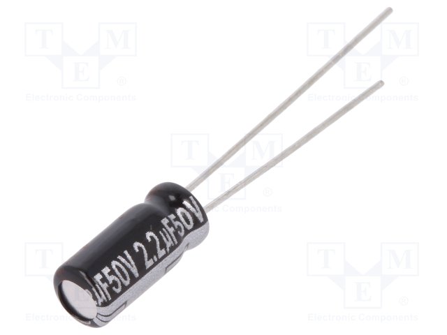 Конденсатор: электролитический; THT; 2,2мкФ; 50ВDC; Ø5x11мм; ±20% |