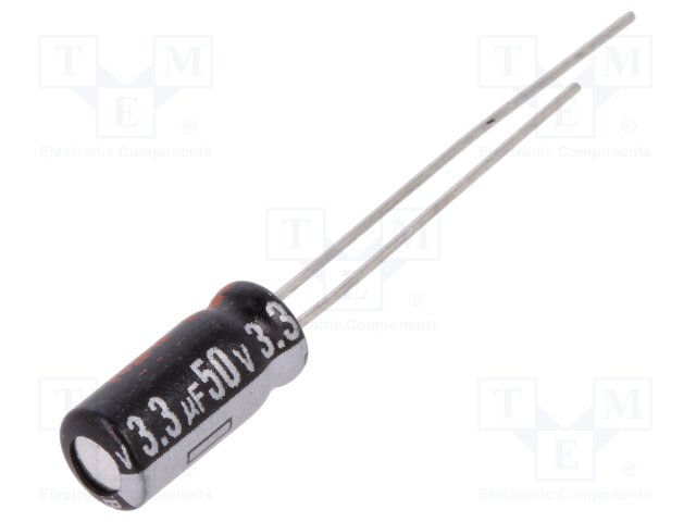 Конденсатор: электролитический; THT; 3,3мкФ; 50ВDC; Ø5x11мм; ±20% |