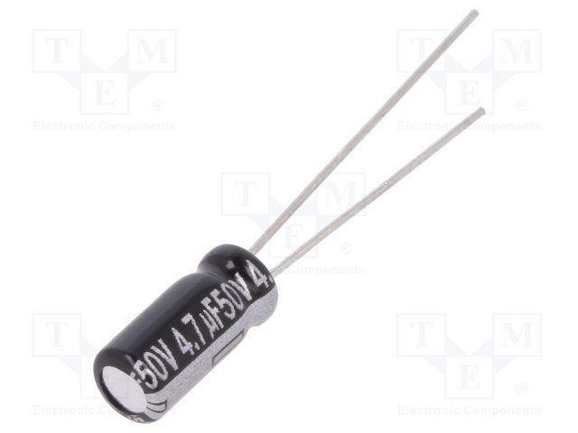 Конденсатор: электролитический; THT; 4,7мкФ; 50ВDC; Ø5x11мм; ±20% |