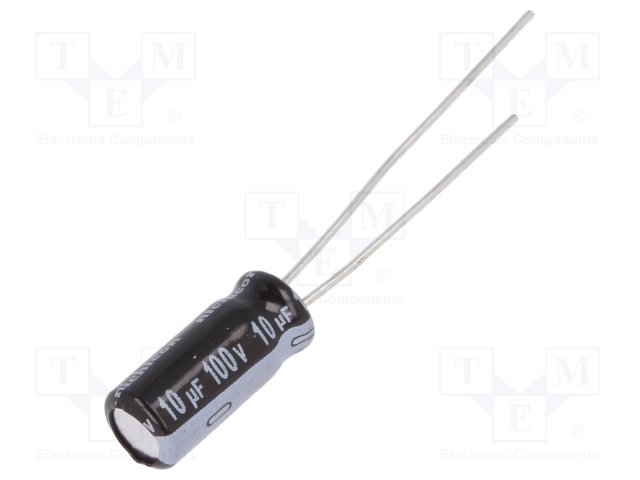 Конденсатор: электролитический; THT; 10мкФ; 100ВDC; Ø5x11мм; ±20% |