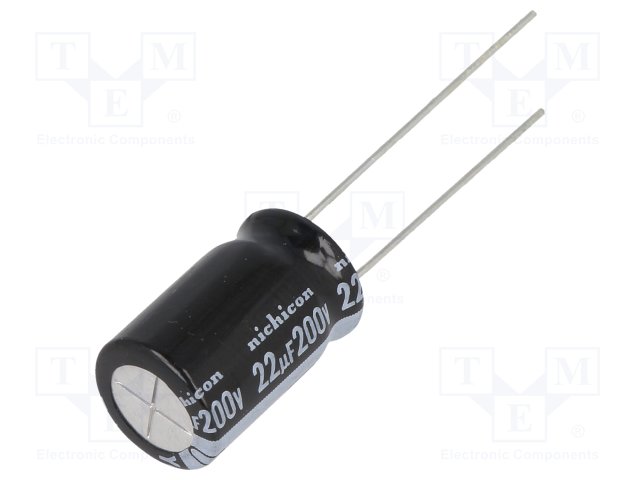 Конденсатор: электролитический; THT; 22мкФ; 200ВDC; Ø10x16мм; ±20% |