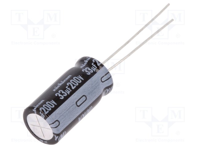 Конденсатор: электролитический; THT; 33мкФ; 200ВDC; Ø10x20мм; ±20% |