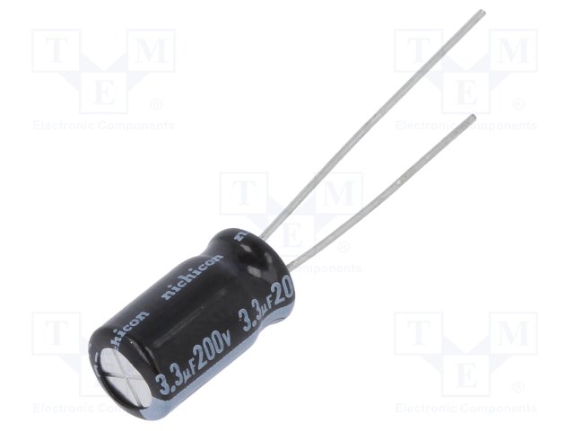 Конденсатор: электролитический; THT; 3,3мкФ; 200ВDC; Ø6,3x11мм |