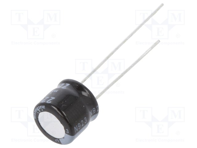 Конденсатор: электролитический; THT; 22мкФ; 25ВDC; Ø6,3x7мм; ±20% |