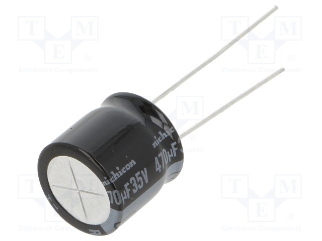 Конденсатор: электролитический; THT; 470мкФ; 35ВDC; Ø12,5x12,5мм |