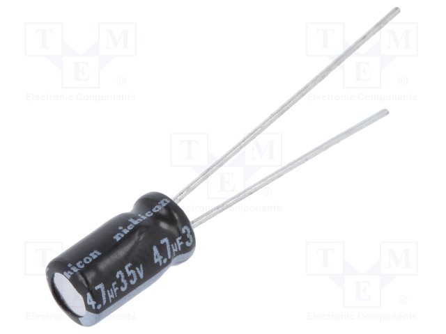 Конденсатор: электролитический; THT; 4,7мкФ; 35ВDC; Ø5x9мм; ±20% |