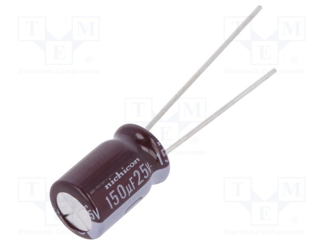 Конденсатор: электролитический; THT; 150мкФ; 25ВDC; Ø8x13мм; ±20% |