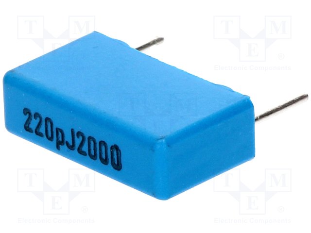 Конденсатор: полипропиленовый; 220пФ; 15мм; ±5%; 5,5x10,5x18мм