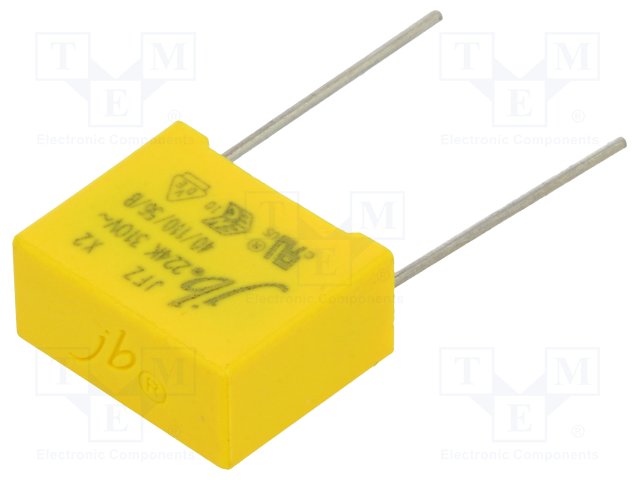 Конденсатор: полипропиленовый; Х2; 220нФ; 22мм; ±10%; Монтаж: THT |