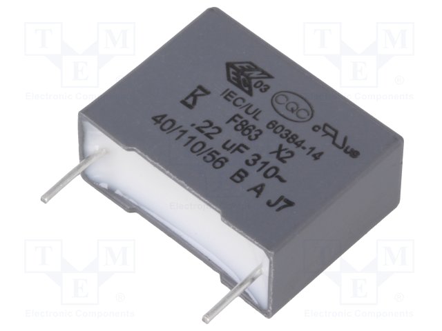 Конденсатор: полипропиленовый; Х2; 0,22мкФ; 15мм; ±10%; -40÷110°C