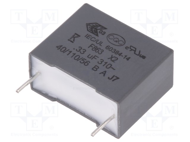 Конденсатор: полипропиленовый; Х2; 0,33мкФ; 15мм; ±10%; -40÷110°C