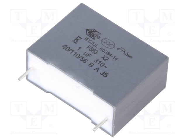 Конденсатор: полипропиленовый; Х2; 1мкФ; 27мм; ±10%; 31,5x13x22мм