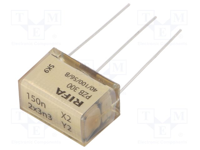 Конденсатор: бумажный; Y2; 150нФ; 300ВAC; Шаг: 25,4мм; ±20%; THT