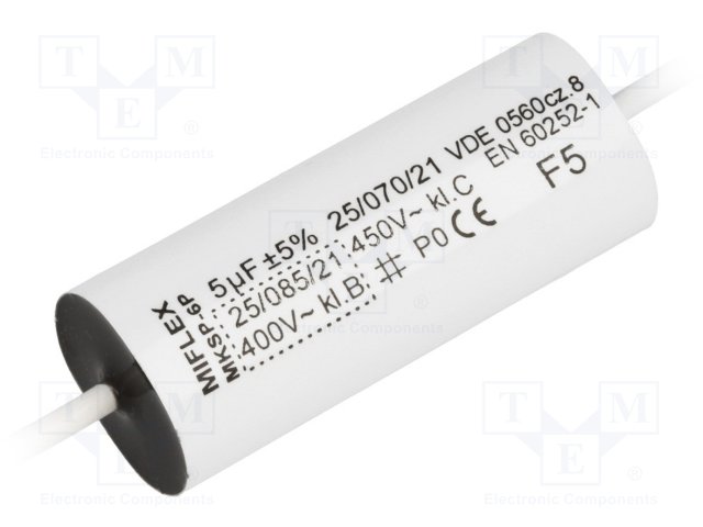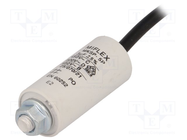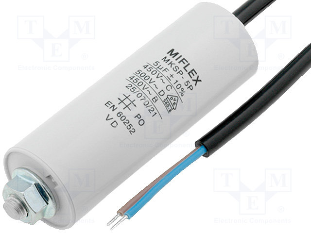 Конденсатор: для двигателей, фазосдвигающий; 5мкФ; 450ВAC; ±5%