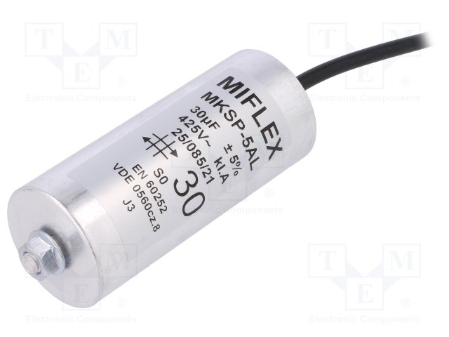 Конденсатор: для двигателей, фазосдвигающий; 30мкФ; 425ВAC; ±5%