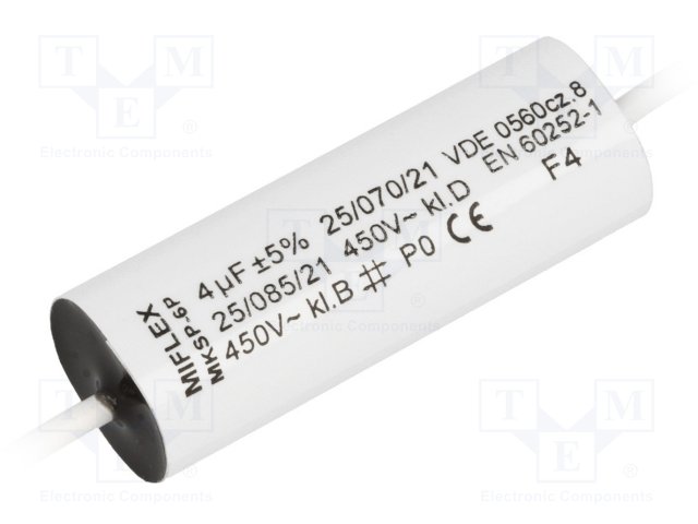 Конденсатор: для двигателей, фазосдвигающий; 4мкФ; 450ВAC; ±5%