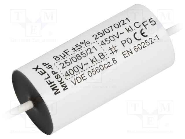 Конденсатор: для двигателей, фазосдвигающий; 8мкФ; 450ВAC; ±5%