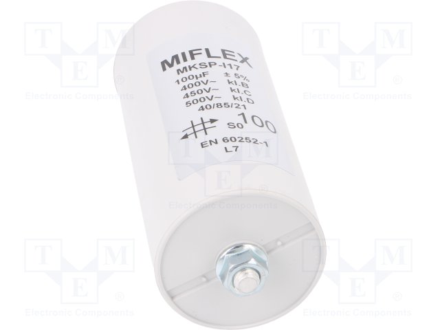 Конденсатор: для двигателей, фазосдвигающий; 100мкФ; 450В; ±10%