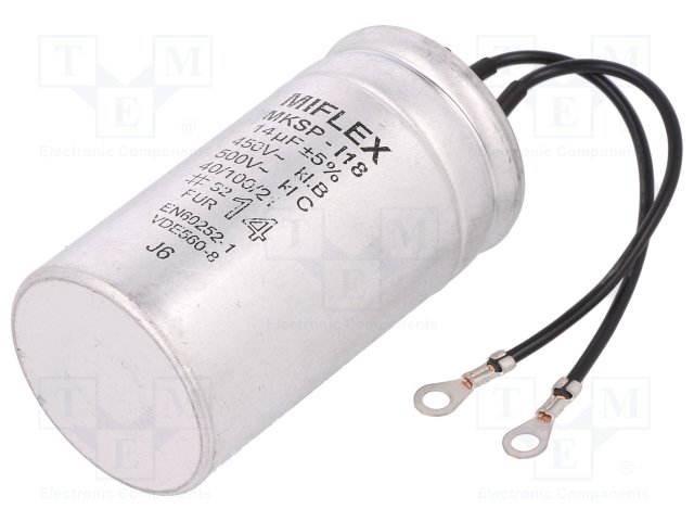Конденсатор: для двигателей, фазосдвигающий; 14мкФ; Ø40x75мм