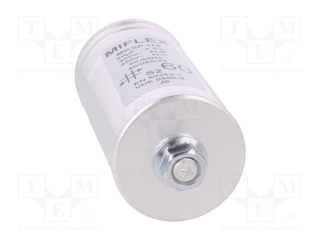Конденсатор: для двигателей, фазосдвигающий; 60мкФ; Ø60x125мм