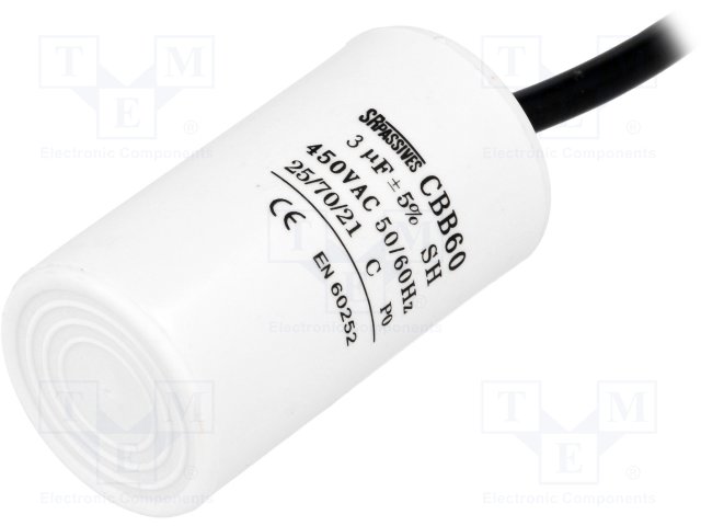Конденсатор: для двигателей, фазосдвигающий; 3мкФ; 450В; ±5%