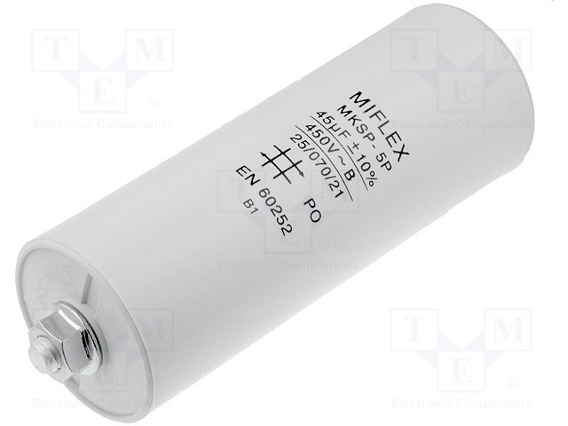Конденсатор: для двигателей, фазосдвигающий; 45мкФ; 450В; ±10%