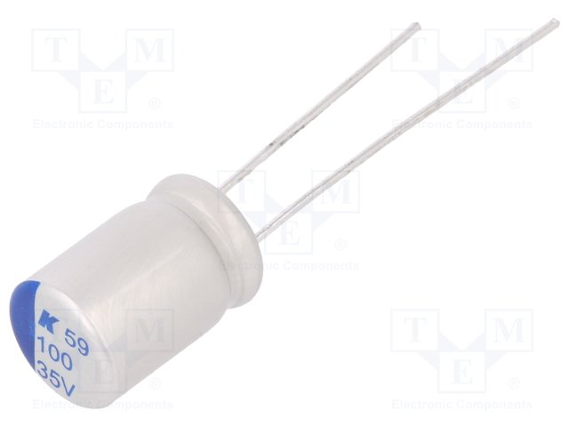 Конденсатор: полимерный; 100мкФ; 6,3ВDC; ESR: 35мОм; THT; ±20%