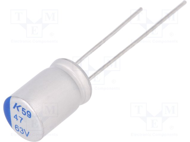 Конденсатор: полимерный; 47мкФ; 63ВDC; ESR: 68мОм; A759; THT; ±20%
