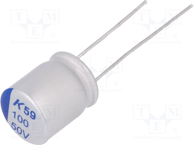 Конденсатор: полимерный; 100мкФ; 50ВDC; ESR: 31мОм; A759; THT; ±20%