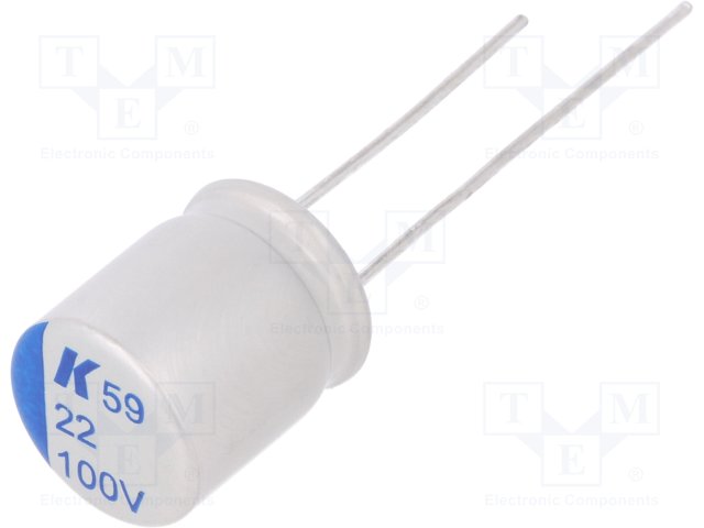 Конденсатор: полимерный; 22мкФ; 100ВDC; ESR: 45мОм; A759; THT; ±20%
