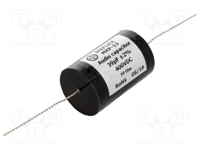 Конденсатор: полипропиленовый; 39мкФ; 400ВDC; ±2%; Ø38,7x67мм