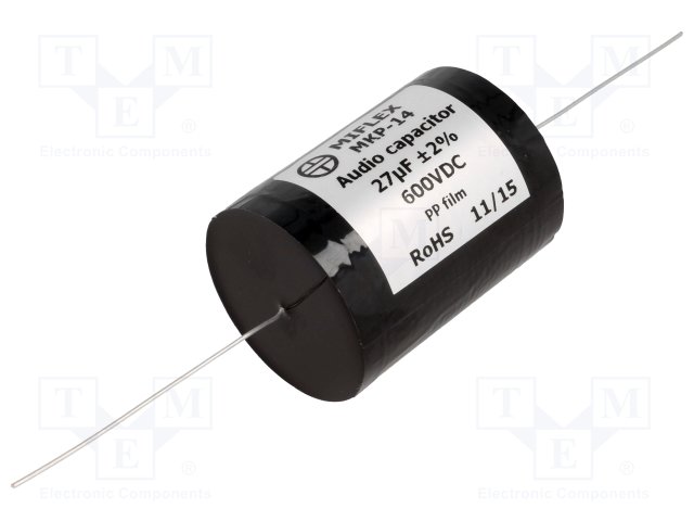 Конденсатор: полипропиленовый; 27мкФ; 600ВDC; ±2%; Ø39x87мм; 0,001